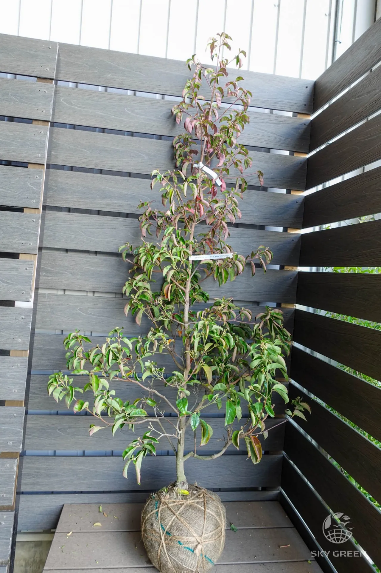 常緑ヤマボウシレッドムーン、ピンク色の花が、当店に入荷しました。その名にふさわしい、優雅で魅力的な色彩が特徴です。高さは1.50メートルで、比較的小型なため、庭や玄関先のスペースにもぴったりです。